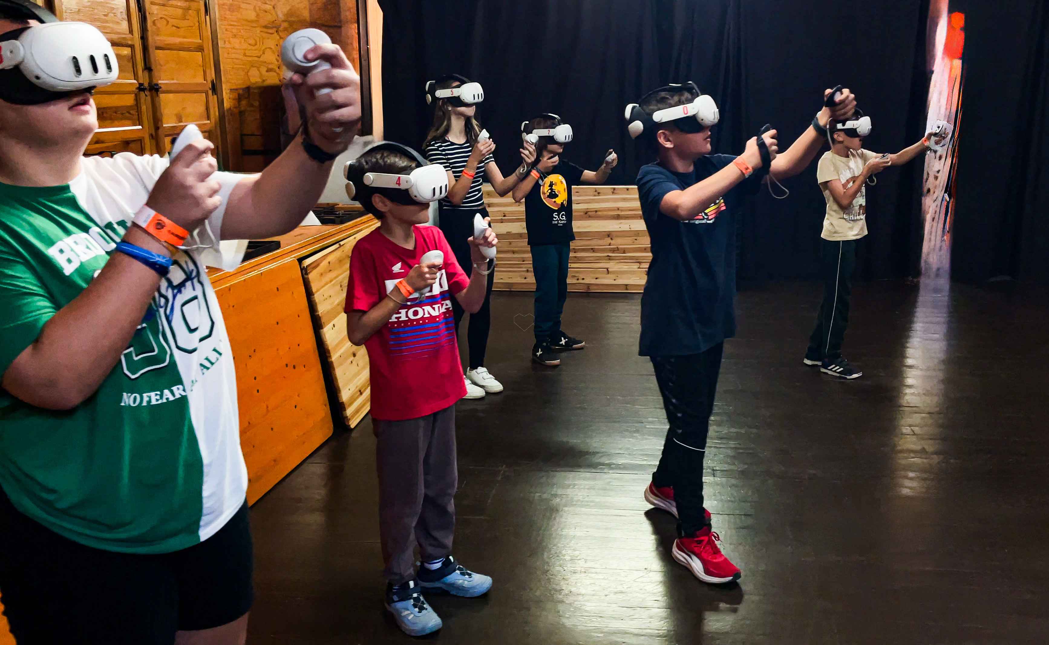 Nuestra arena permite que seis personas jueguen simultáneamente en el mismo escenario virtual. Competición, cooperación y risas aseguradas.