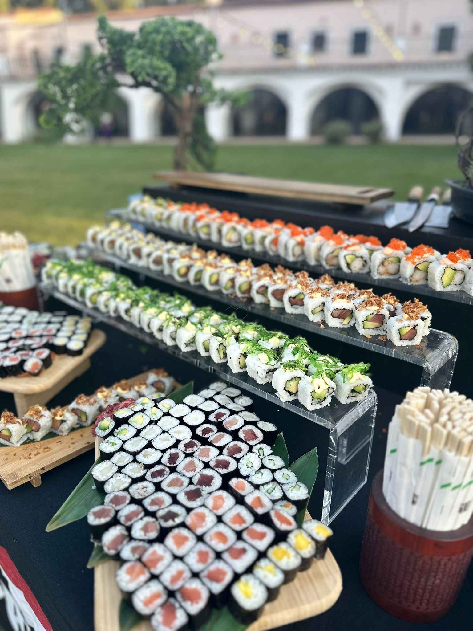 TAMBIEN OFRECEMOS VARIAS ALTERNATIVAS EN MESAS TEMATICAS COMO POR EJEMPLO ES NUESTRA ESPECIALIDAD LA MESA DE SUSHI.